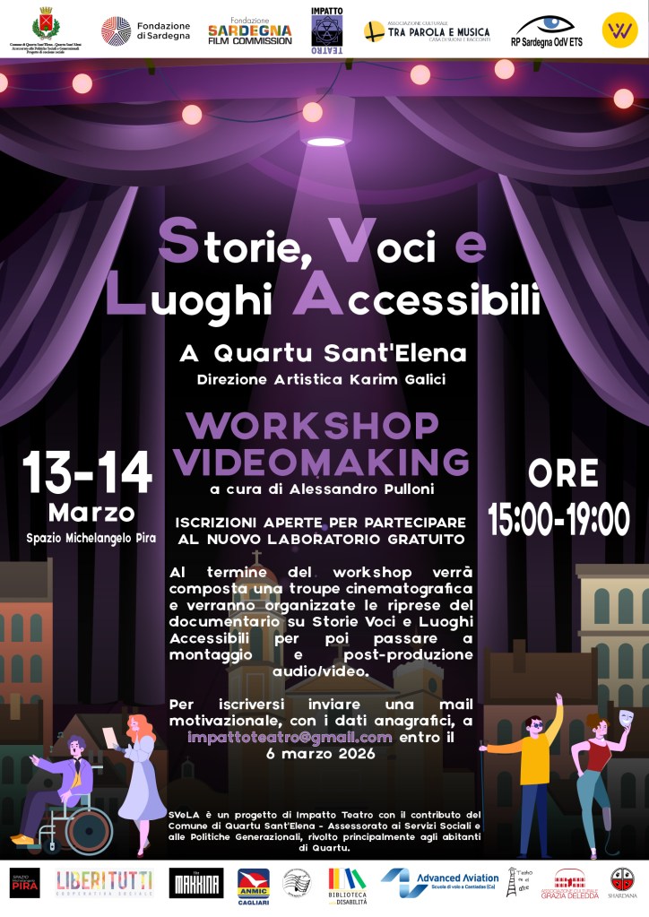 >12 APRILE h 10.00 – CONFERENZA “TURISMO E ACCESSIBILITA’ IN SARDEGNA” con interventi di Marco Altea e Karim Galici e PROIEZIONE ESTRATTI DA “RUN TRIP LIFE – IL VIAGGIO DELLA VITA” – AULA CONSILIARE – QUARTU SANT’ELENA